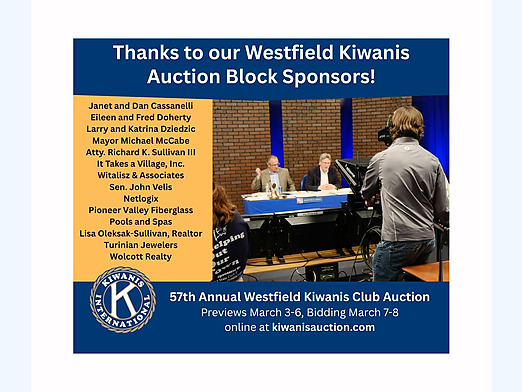 A big thank you to City Councilor Brent B. Bean II for sponsoring a Westfield Kiwanis auction block!